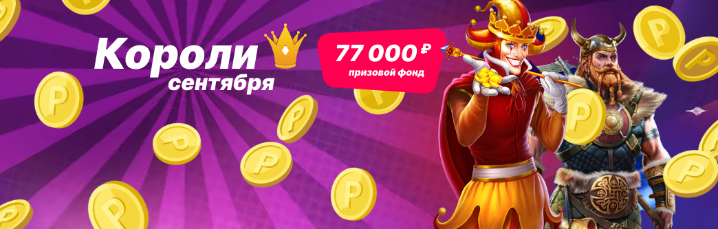Вступай в борьбу за титул короля осени! С 1 по 24 сентября на CrystalSlot проходит турнир "Короли сентября" с призовым фондом 77 000 ₽. Играй в отобранные слоты, зарабатывай очки и поднимайся в турнирной таблице.